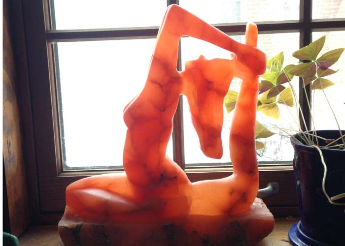 Sunrise Yoga. Translucent orange alabaster. Rare material from the Southwest United States.