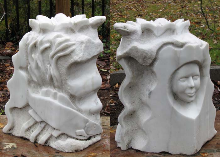 Yule marble. Work in process. This will be a fountain when complete. Water bubbles out the top and streams down the piece. Approx 400 lbs.