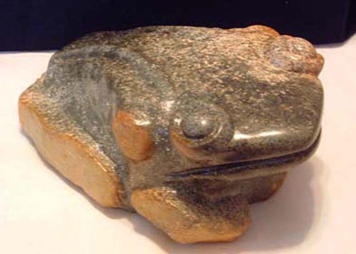 Frog Spirit. Soapstone. My first stone sculpture. Carved at the Missouri Botanical Garden Chapungu sculpting workshop in 2007. Approx 20 lbs.