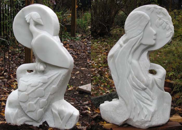 Terrance and the Moon Child. Yule Marble. Photo is two sides of the same stone.Carved at the Marble, Marble carving symposium in Colorado, 2015